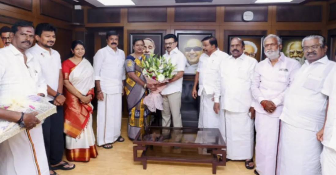 சென்னை: Desiya Murpokku Dravida Kazhagam (தேமுதிக) பொதுச் செயலாளர் Premallatha Vijayakant, தமிழ்நாடு முதல்வரும் Dravida Munnetra Kazhagam (திமுக) தலைவருமான M. K. Stalin அவர்களை திமுக தலைமையகத்தில் சந்தித்து, தேமுதிக திமுக கூட்டணியில் இணைவதை அதிகாரப்பூர்வமாக உறுதி செய்தார்.